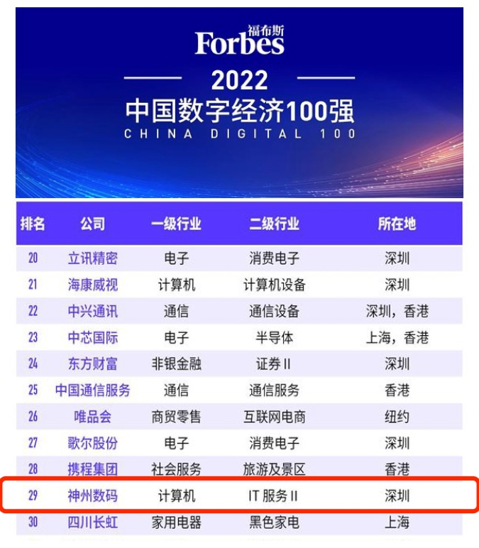 8月20日,“福布斯2022中国数字经济100强榜单”在江西上饶发布。作为数字中国的探索者、实践者和赋能者,意昂数码凭借杰出的表现,位列百强榜单第29位,计算机类第3位,再度获得权威机构认可。